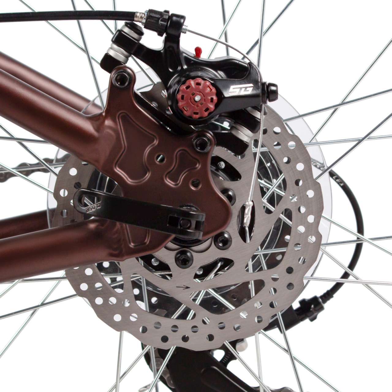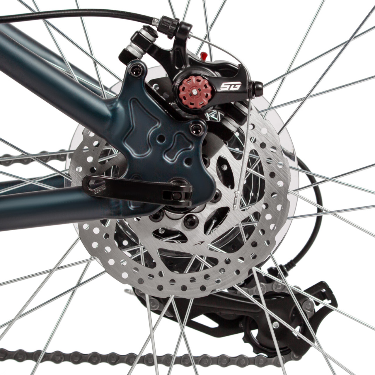 • Дисковые механические тормоза STG с креплением калипера Post Mount, креплением ротора под 6 болтов и роторами 180 мм на переднем колесе и 160 мм на заднем
