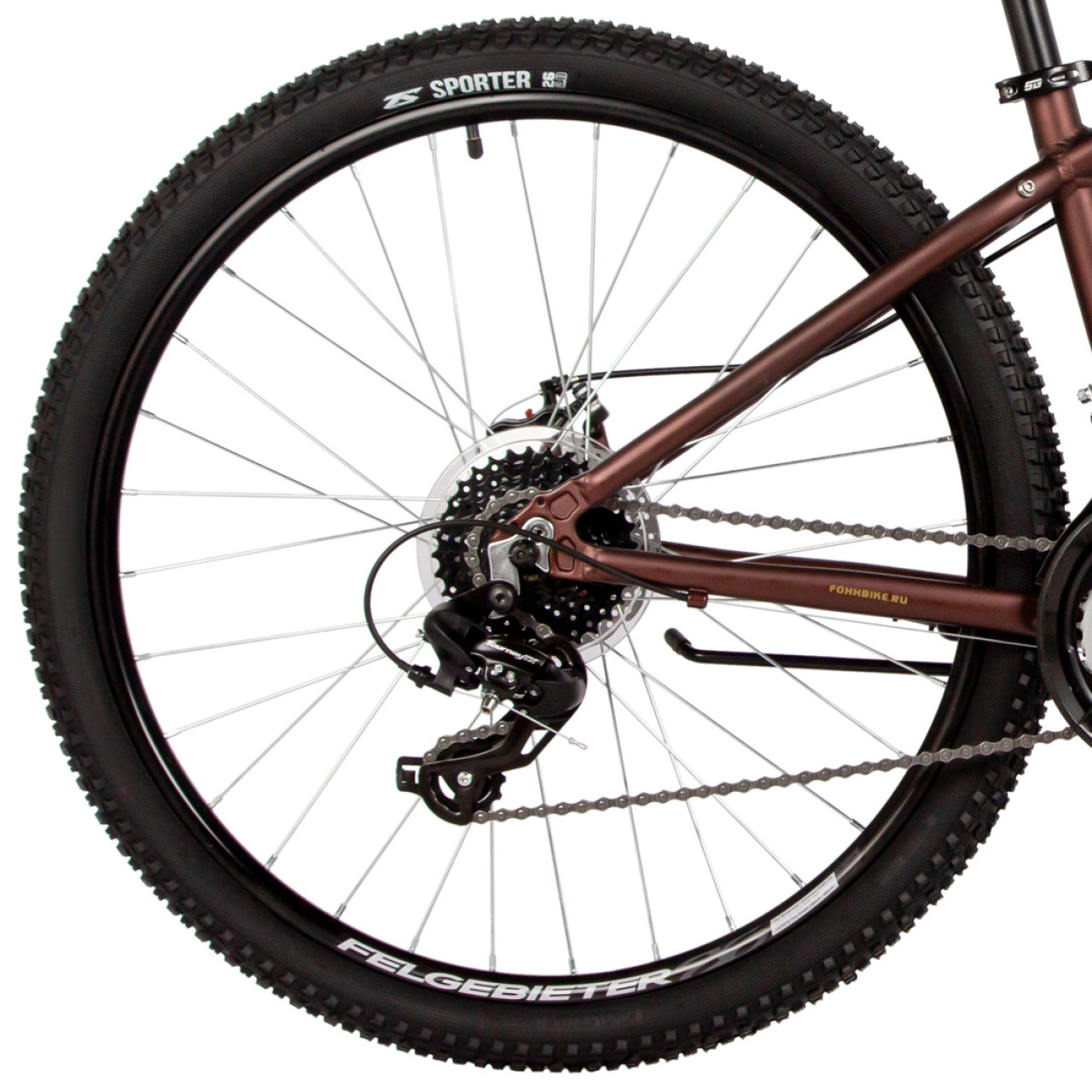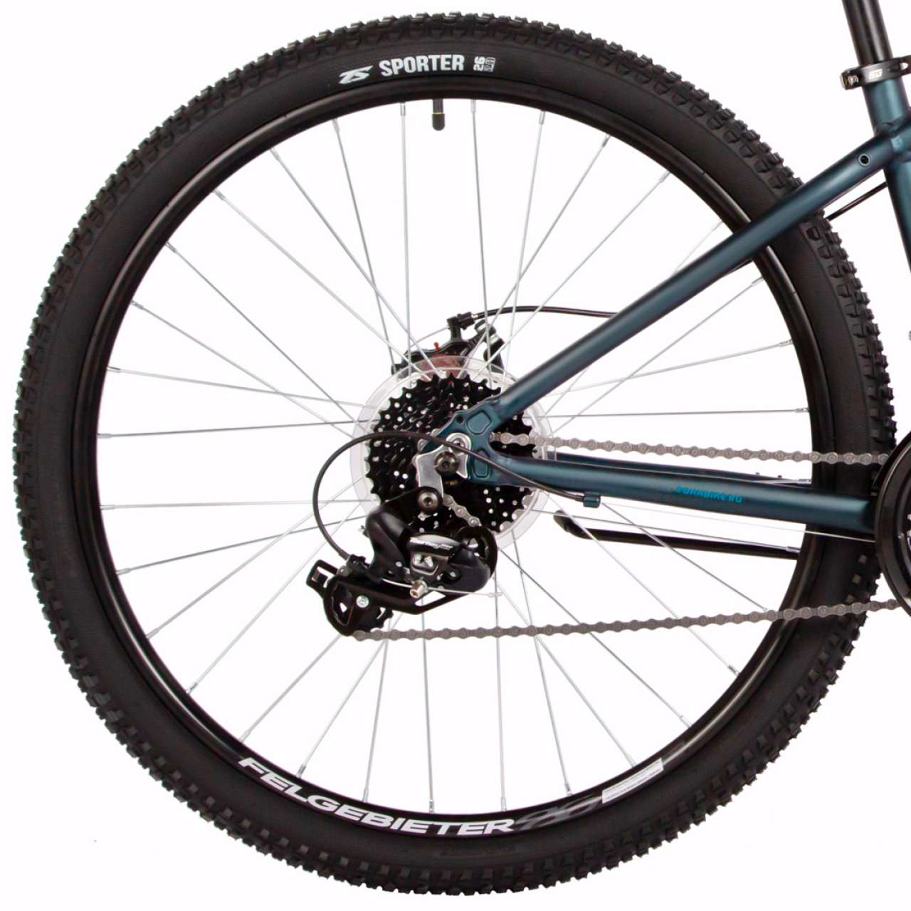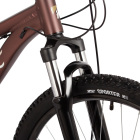 Байк собран на базе прочной алюминиевой рамы, которая отлично выдерживает длительные нагрузки, а с неровностями рельефа справится амортизационная вилка пружинного типа с ходом в 100 мм. Этот велосипед выделяется удобной трансмиссией. Передний переключатель Ltwoo A3, задний Shimano Tourney и манетки Microshift с диапазоном 3x7 скоростей гарантируют точное и плавное переключение на любом рельефе.