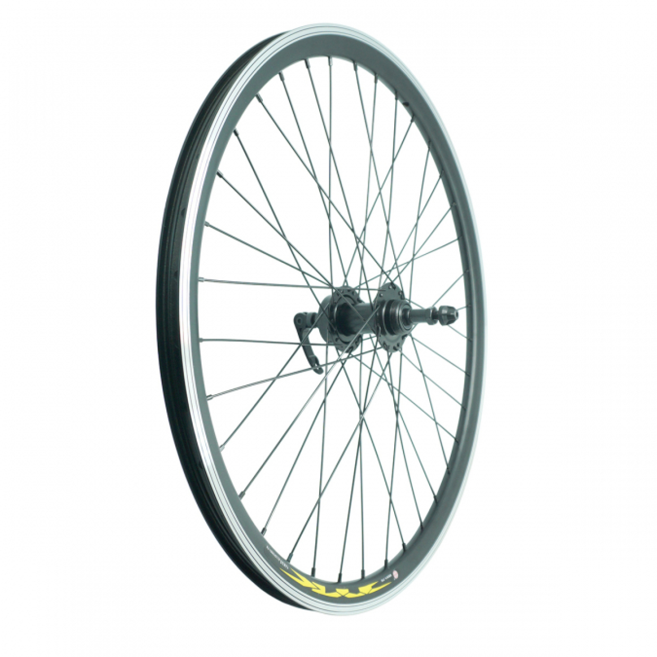 Колесо заднее в сборе 26", двойной, стальная втулка, под диск, 6 болтов, под трещотку, эксцентрик
